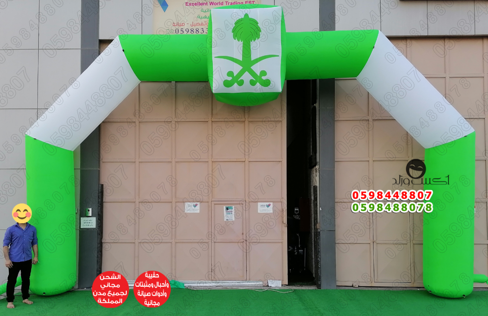 بوابة هوائية نفخ سيفين ونخلة مع حلقات و أحبال 3 في 1