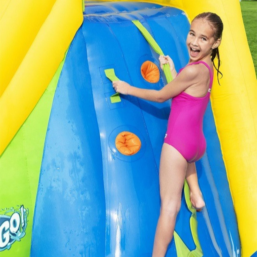 زحليقة جبل الجليد المائية مع حوض دائري كبير 6 في 1 : حوض مسبح كبير , زحليقة مائية , تسلق , رشاش مائي , شبك حماية , رشاش مائي علوي