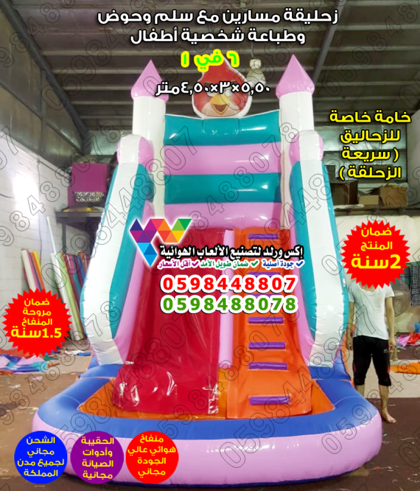 زحليقة مائية مع سلم وحوض بشخصية انجري بيرد 4 في 1