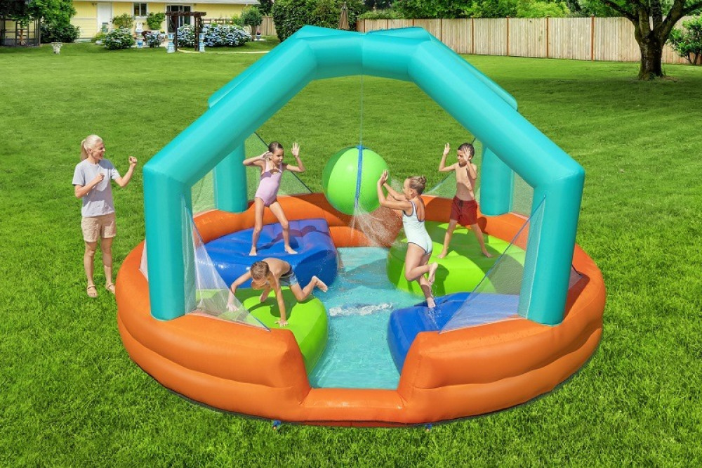 زحليقة مائية مع مقاعد وكورة تدحرج 7 في 1 : زحليقة , كرة تدحرج نفخ , 4مقاعد , رشاش مائي