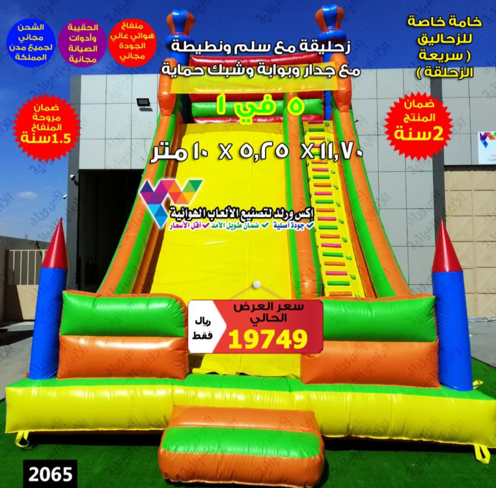 زحليقة مع سلم ونطيطة مع جدار وبوابة و شبك حماية