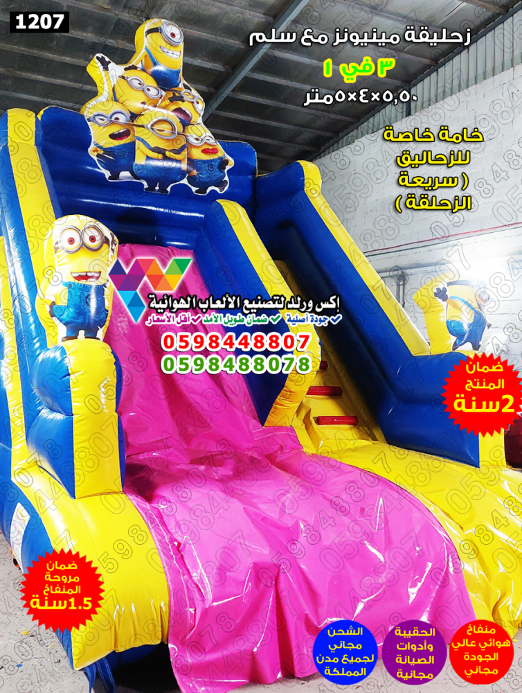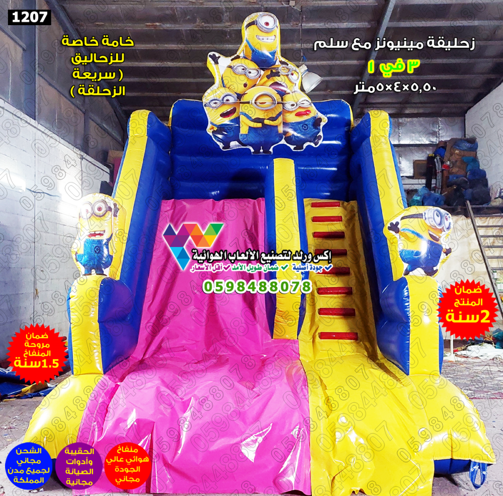 زحليقة هوائية مينيونز مع سلم