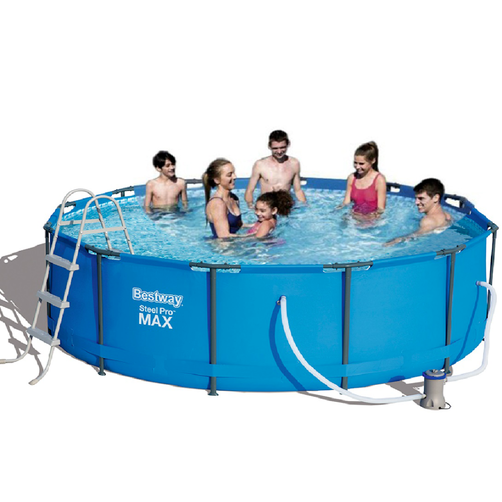 مسبح شراع فريم عائلي دائري أزرق أعمدة مع فلتر وسلم 3 في 1