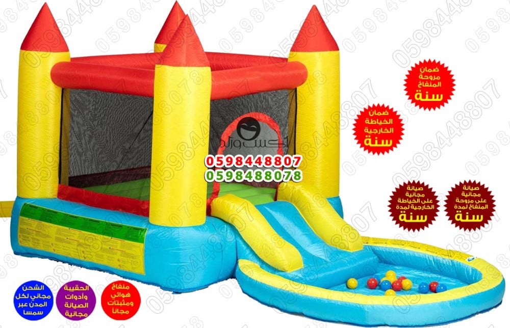 نطيطة – زحليقة – حوض مائي – هوز مائي – 30 كرة ملونة – شبك حماية – بوابة دخول
